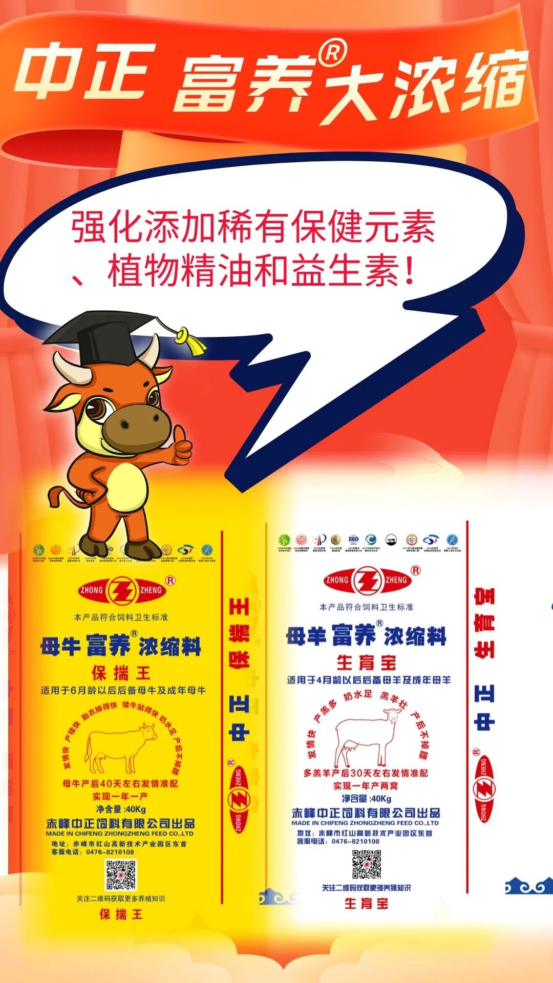 现在中正推出大浓缩:母牛保揣王、母羊生育宝可以全程饲喂,避免掉膘现象。配比比例为,空怀及妊娠前期:浓缩料40%+玉米60%;妊娠后期及泌乳期:50%浓缩料+50%玉米。